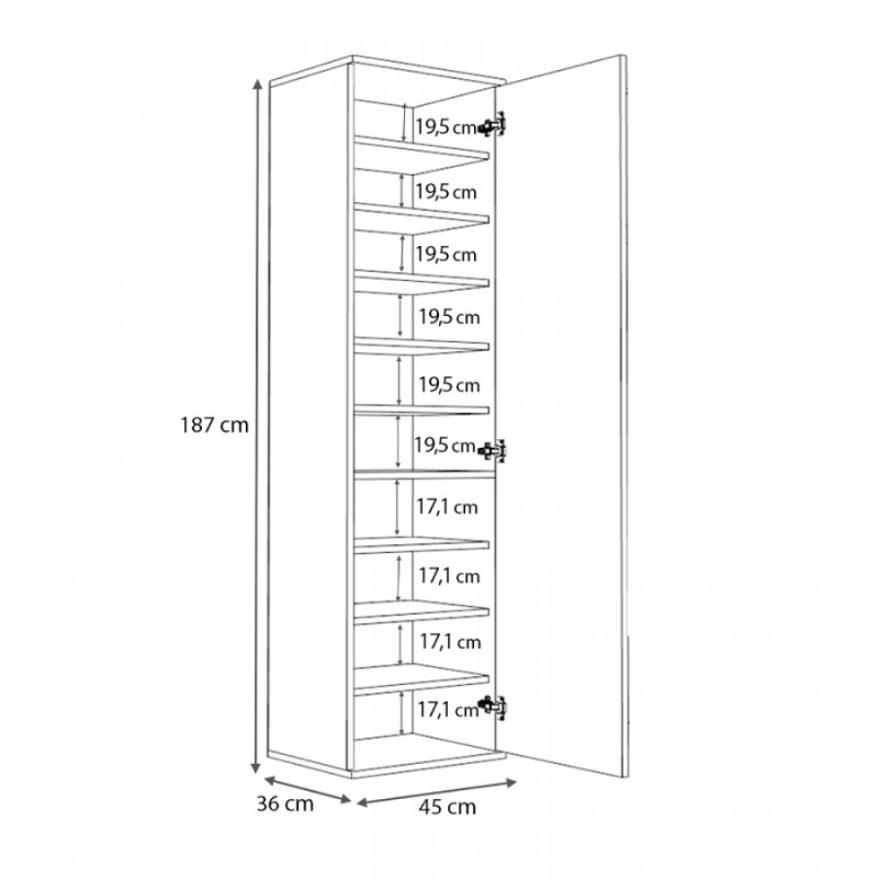 - Διαστάσεις: Μήκος 45 x Βάθος 36 x Ύψος 187 εκ.
