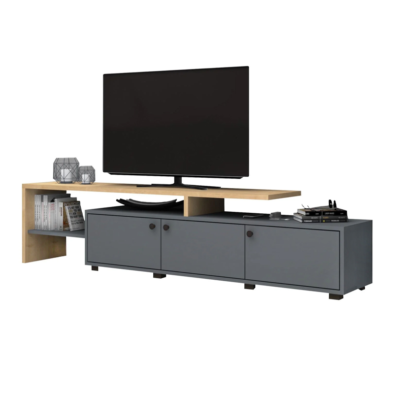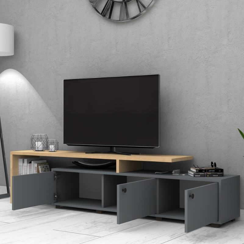 Έπιπλο τηλεόρασης Amadeo Megapap χρώμα ανθρακί – φυσικό οξιάς 197,5x35x46cm.