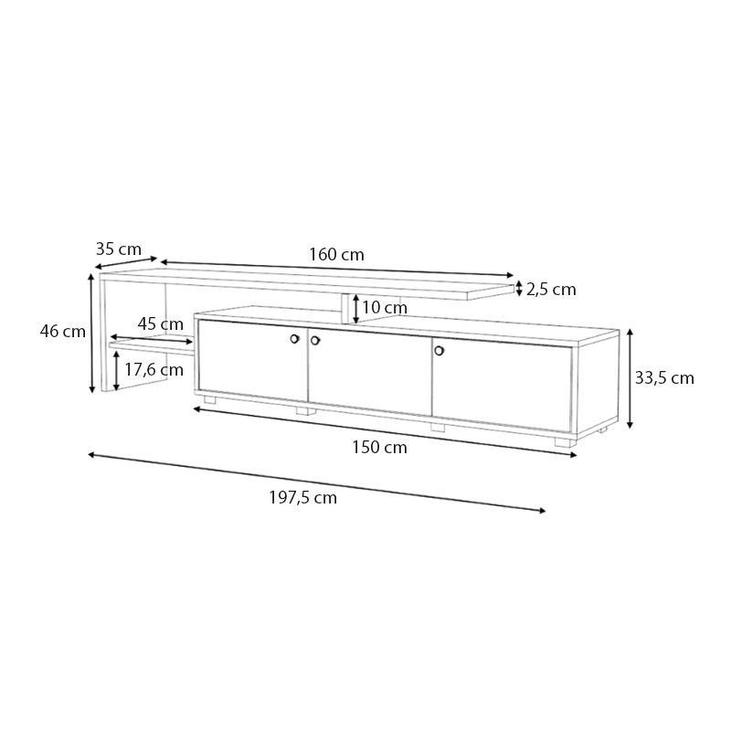 - Διαστάσεις: Μήκος 197,5 x Βάθος 35 x Ύψος 46 εκ.