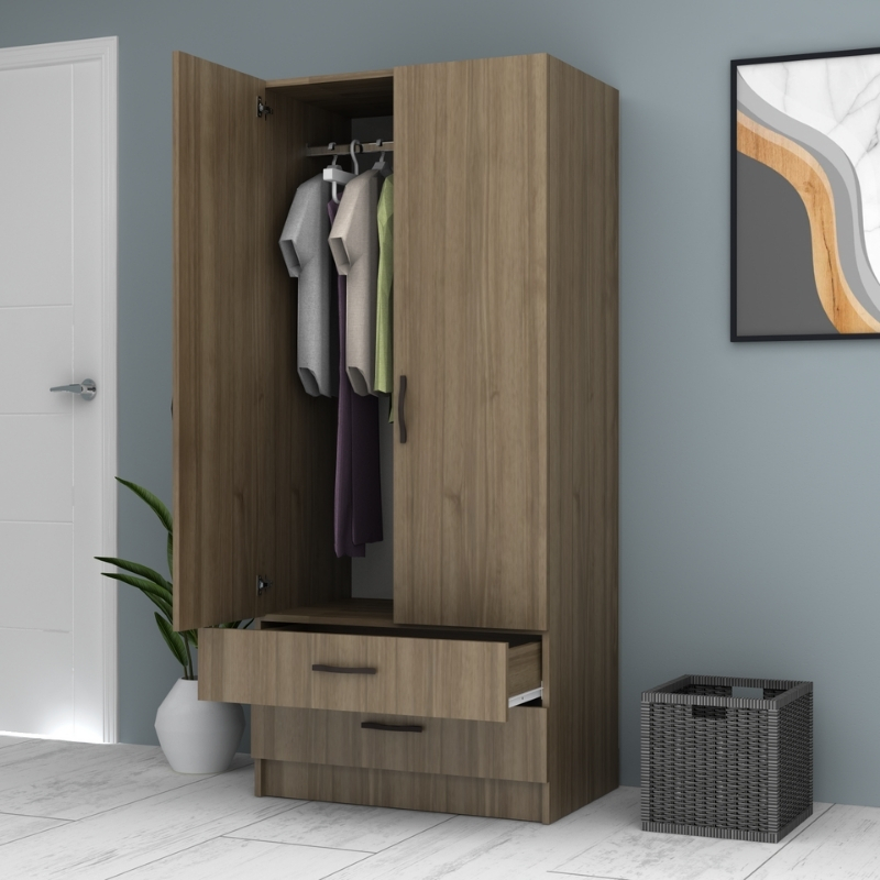 Ντουλάπα ρούχων Ricardo Megapap δίφυλλη με συρτάρια χρώμα καρυδί 80×51,8×181εκ.