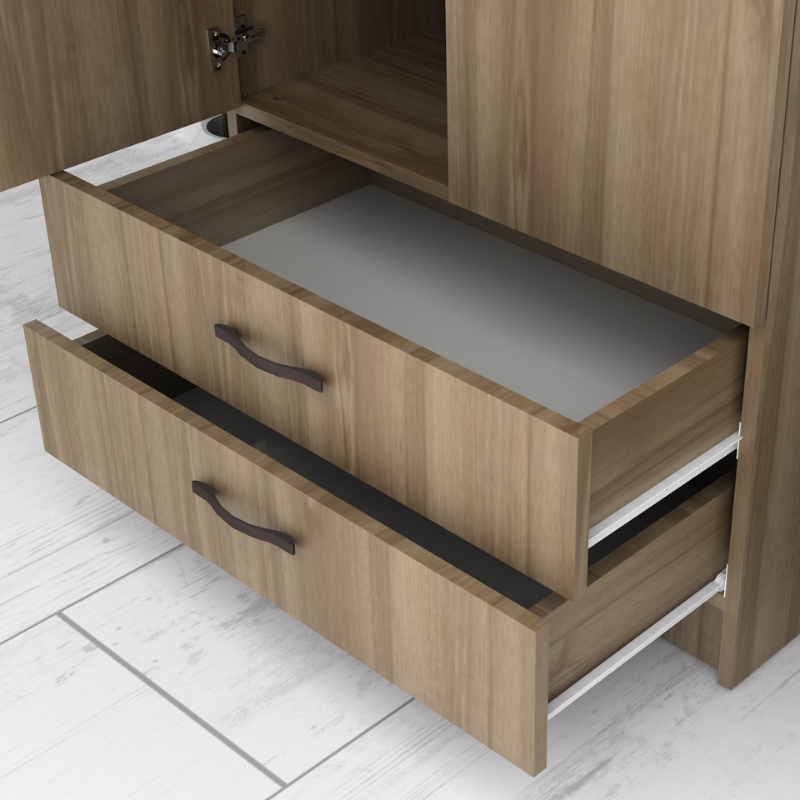 • Στο εσωτερικό της φέρει μια μεταλλική βέργα για κρεμάστρες. Στο κάτω μέρος φέρει δύο πρακτικά συρόμενα συρτάρια.