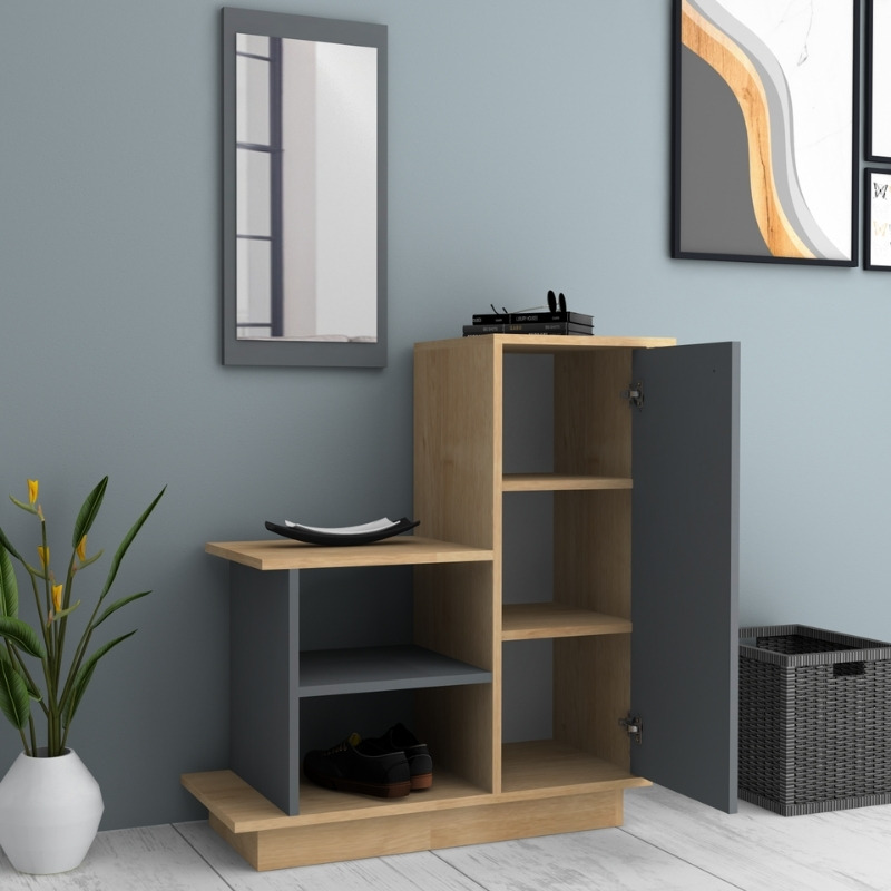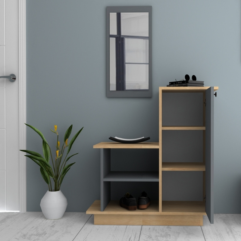 Έπιπλο εισόδου Cute Megapap χρώμα φυσικό οξιάς – ανθρακί 90x35x95εκ.