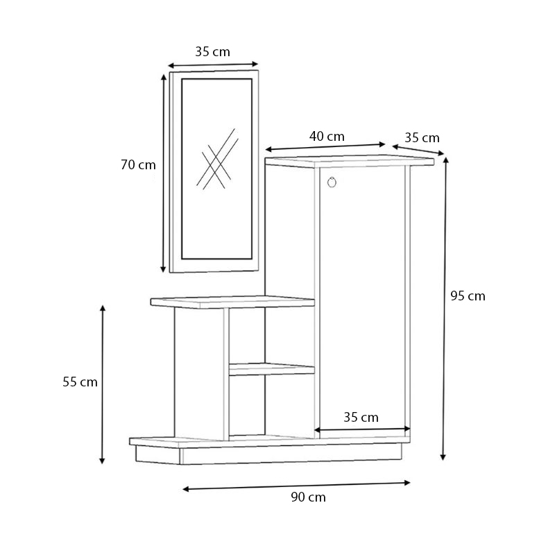 - Διαστάσεις: Μήκος 90 x Βάθος 35 x Ύψος 95 εκ.