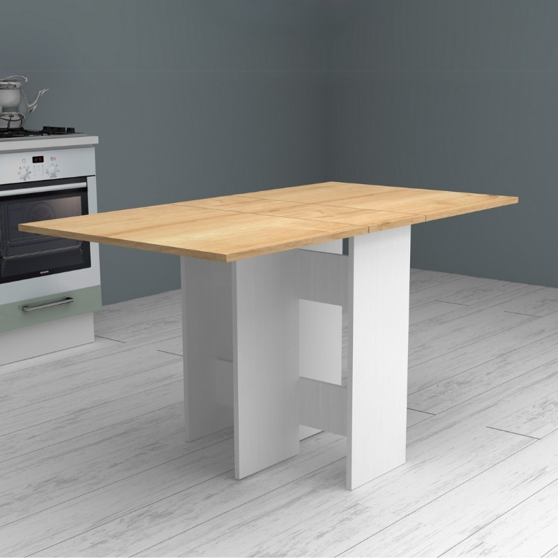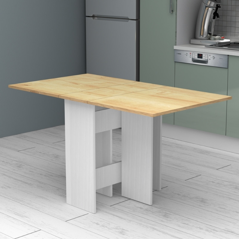 Τραπέζι Pepe Megapap επεκτεινόμενο χρώμα λευκό – φυσικό οξιάς 28(56+56)x77x75εκ.