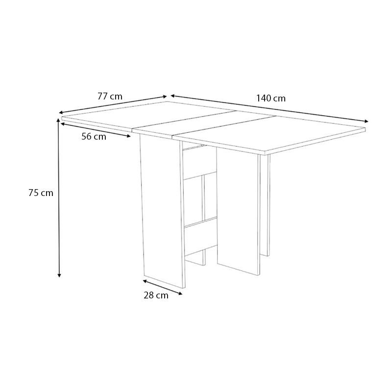 - Διαστάσεις: Μήκος 28 (56+56) x Βάθος 77 x Ύψος 75 εκ.