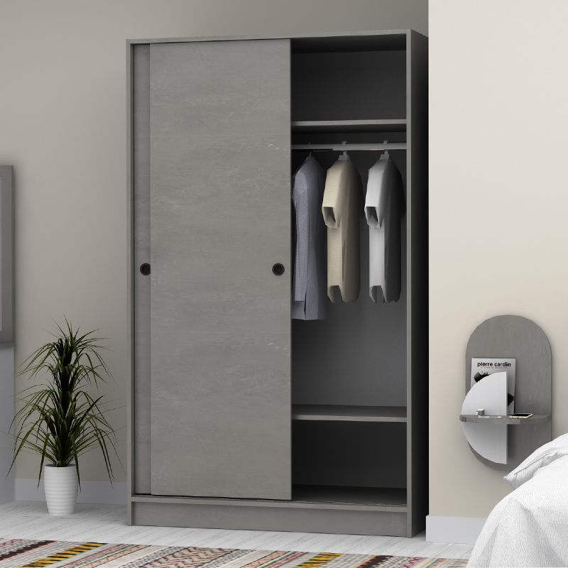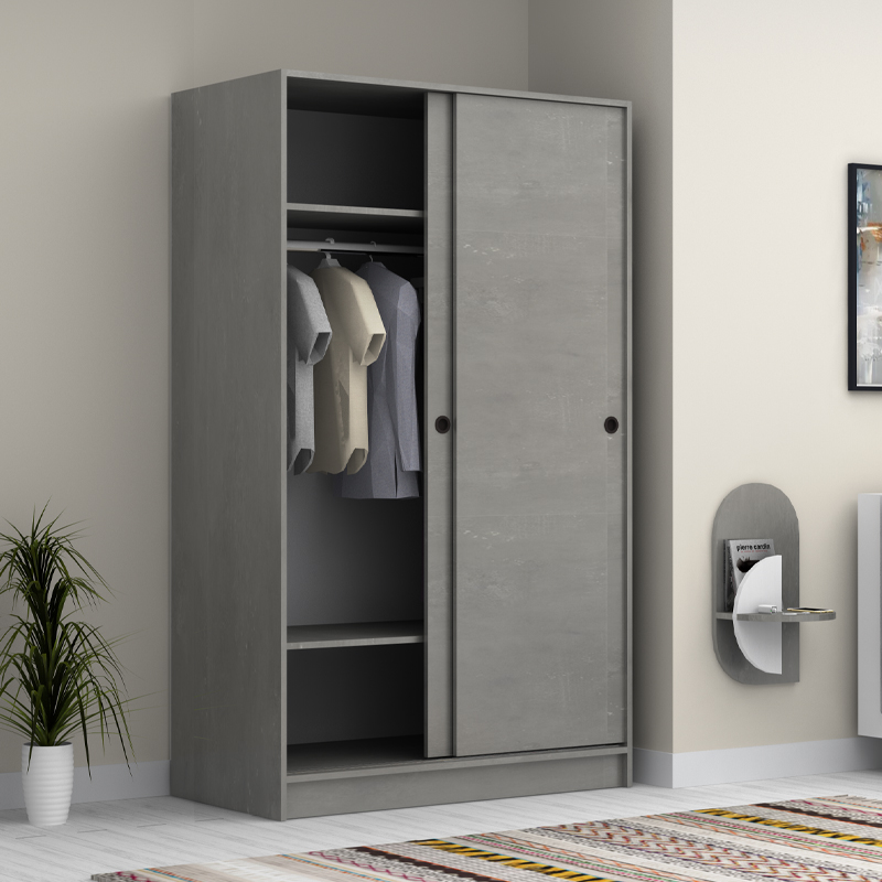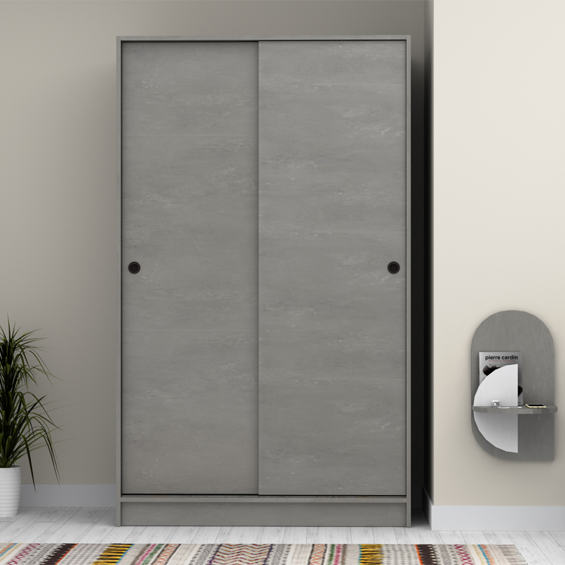 Ντουλάπα ρούχων Regio Megapap δίφυλλη συρόμενη χρώμα γκρι σκυροδέματος 120x60x200εκ.