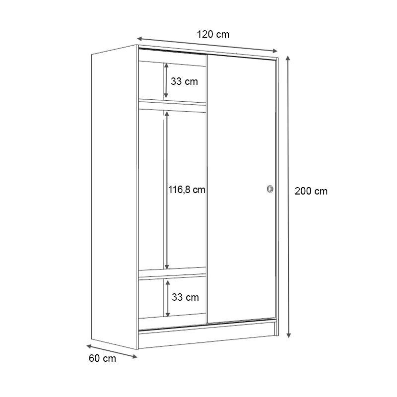 • Διαστάσεις: Μήκος 120 x Βάθος 60 x Ύψος 200 εκ.