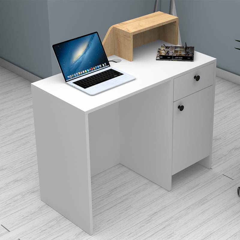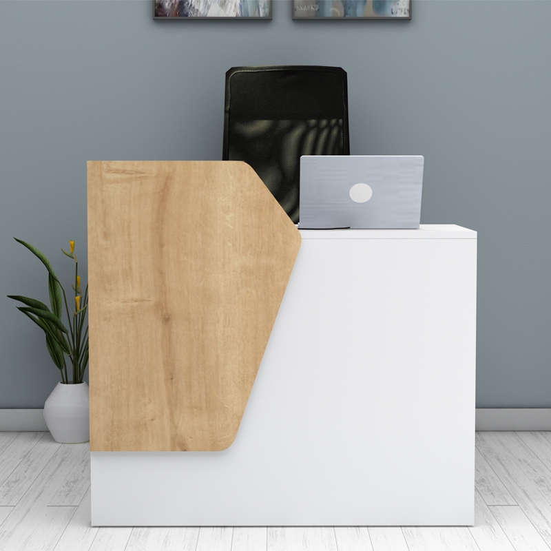 Γραφείο υποδοχής – reception Merlin Megapap χρώμα λευκό – φυσικό οξιάς 110x50x101,8εκ.