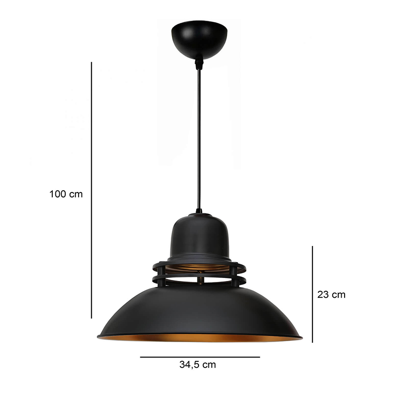 Φωτιστικό οροφής Gerek Megapap E27 μεταλλικό μονόφωτο χρώμα μαύρο Ø34,5×100εκ.