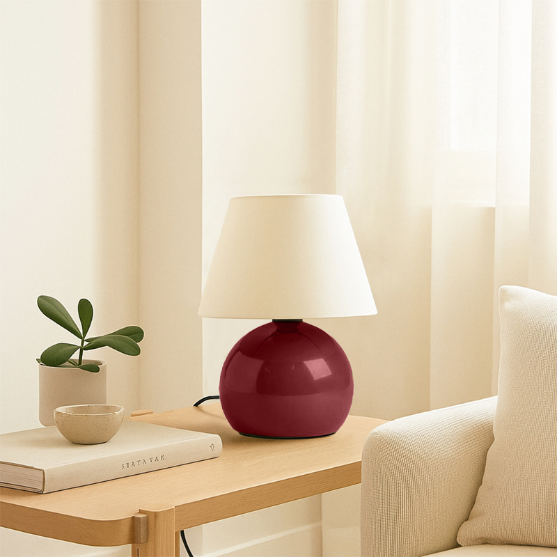 Φωτιστικό επιτραπέζιο Alaska Megapap E27 μεταλλικό – ύφασμα Pvc χρώμα μπορντώ – κρεμ Ø22×30εκ.