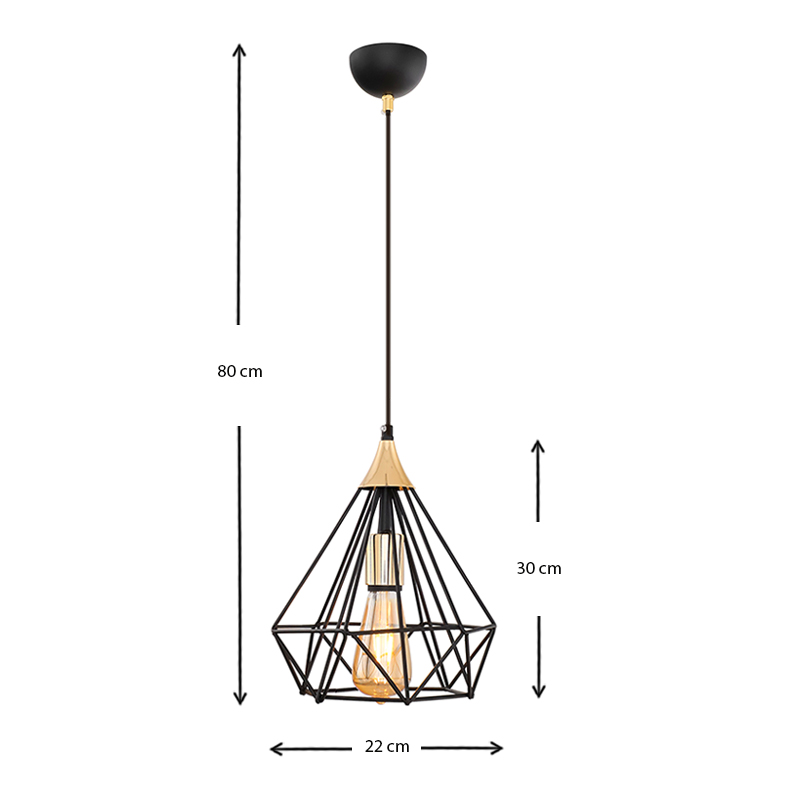 Φωτιστικό οροφής Hideki Megapap E27 μεταλλικό μονόφωτο χρώμα μαύρο 22x22x80εκ.