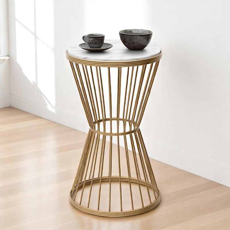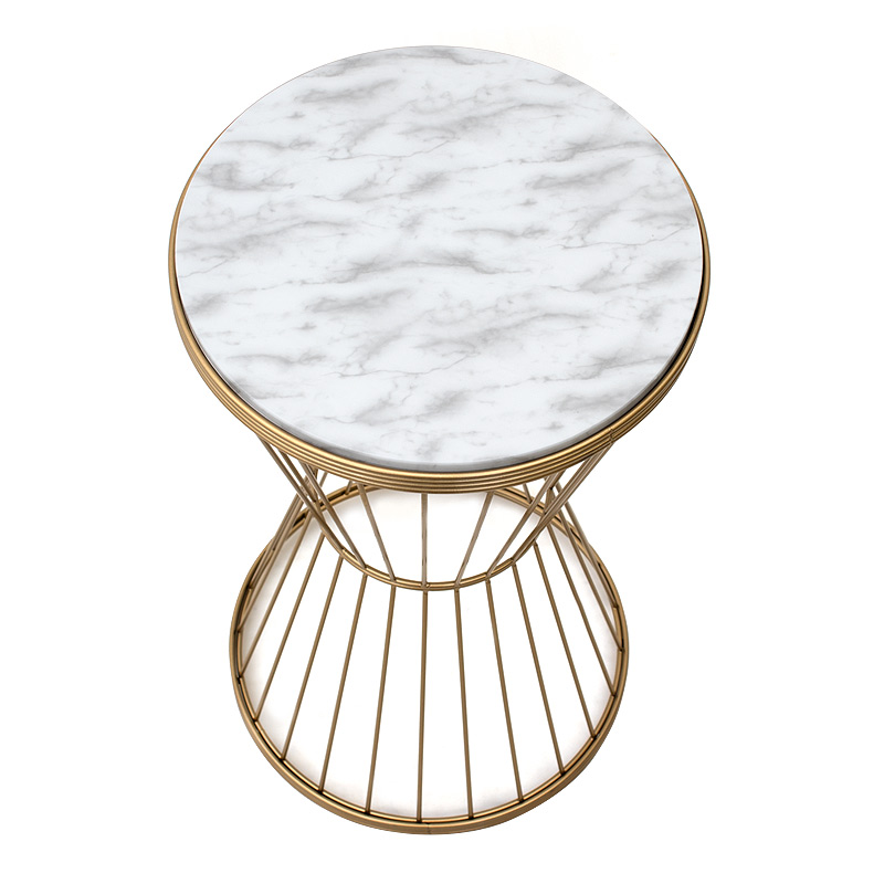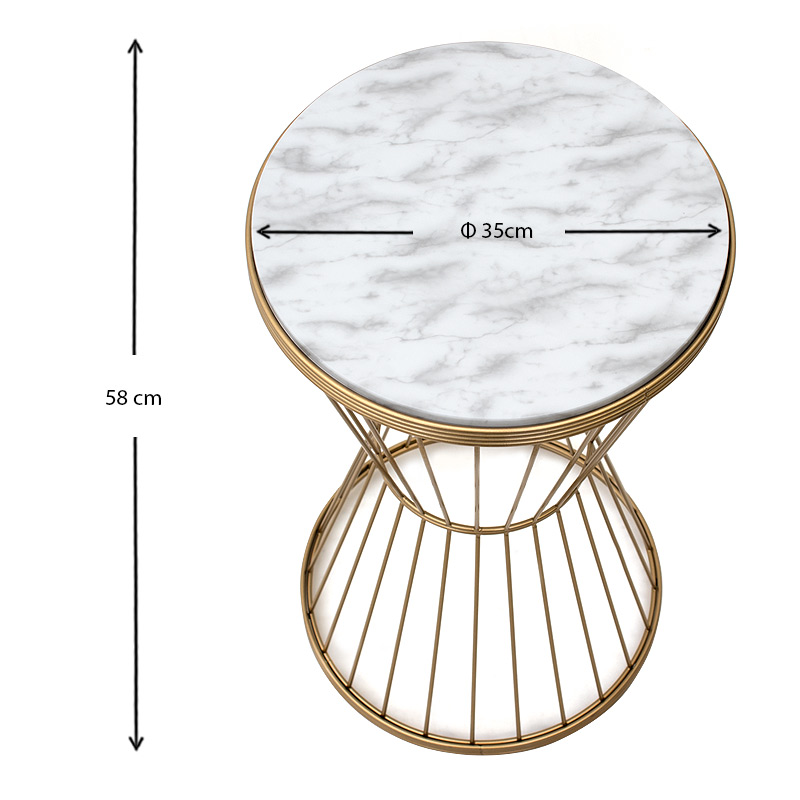 Βοηθητικό τραπεζάκι Hoffman Megapap μεταλλικό – Mdf χρώμα χρυσό – λευκό εφέ μαρμάρου 35x35x58εκ.