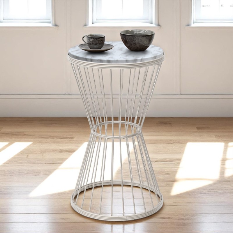 Τραπεζάκι βοηθητικό Hoffman Megapap μεταλλικό – Mdf χρώμα λευκό – λευκό εφέ μαρμάρου 35x35x58εκ.