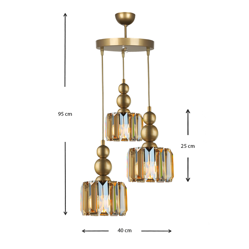 Φωτιστικό οροφής Alaba Megapap E27 μεταλλικό – γυάλινο τρίφωτο χρώμα χρυσό 40x40x95εκ.