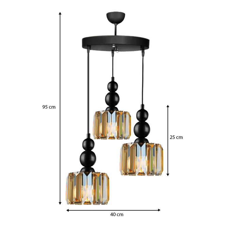 Φωτιστικό οροφής Alaba Megapap E27 μεταλλικό – γυάλινο τρίφωτο χρώμα μαύρο 40x40x95εκ.