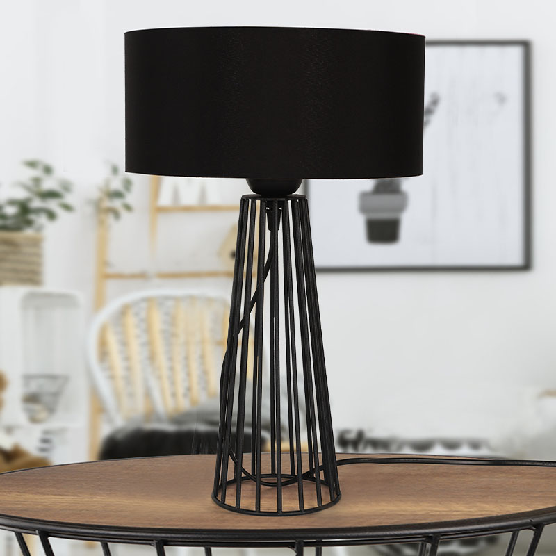 Φωτιστικό επιτραπέζιο Filip Megapap E27 μεταλλικό – υφασμάτινο χρώμα μαύρο 25x25x45εκ.