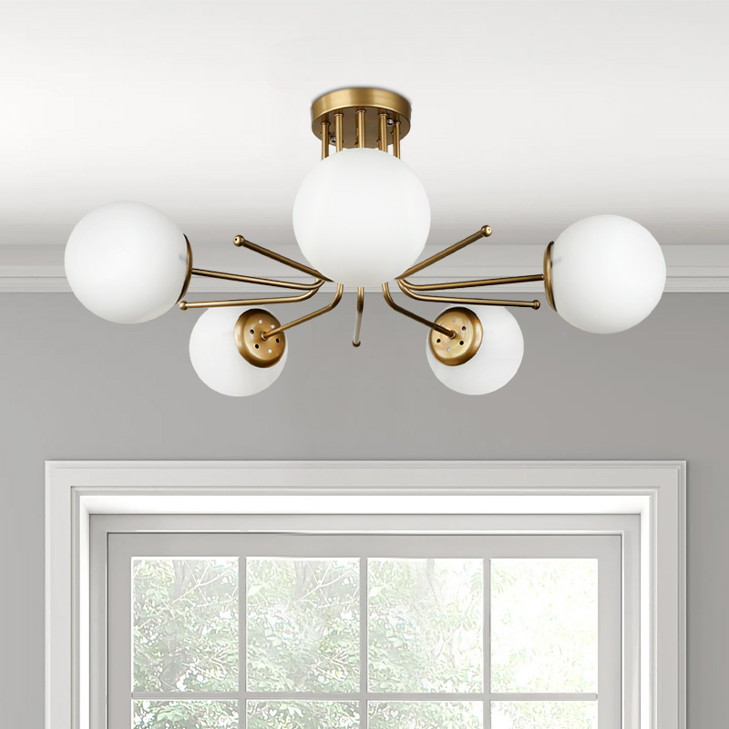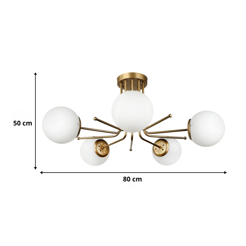 Φωτιστικό οροφής Maxidex Megapap Ε27 μεταλλικό – γυάλινο πεντάφωτο χρώμα χρυσό Ø50×50εκ.
