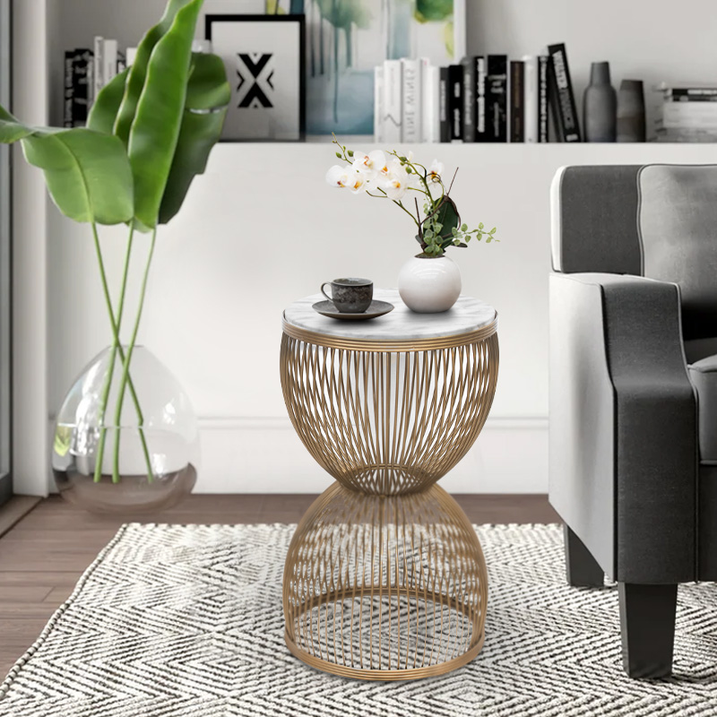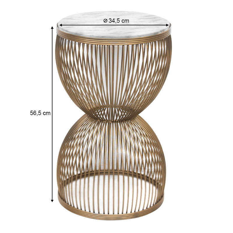 Τραπεζάκι βοηθητικό Stella Megapap μεταλλικό – Mdf χρώμα χρυσό – λευκό εφέ μαρμάρου Ø34,5×56,5εκ.