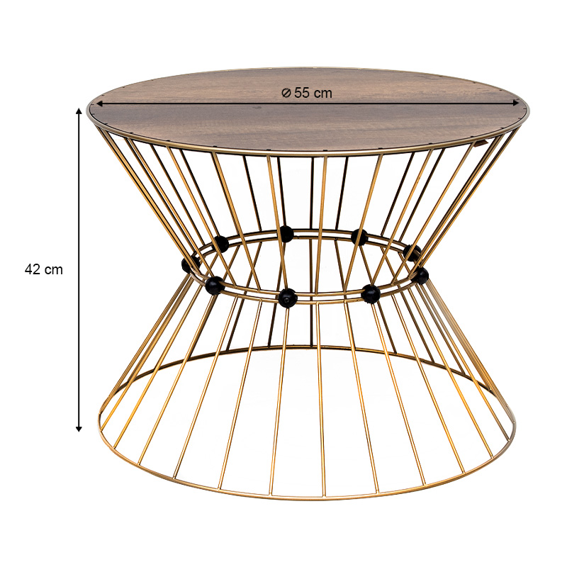 Τραπεζάκι σαλονιού Girene Megapap μεταλλικό – Mdf χρώμα χρυσό – καρυδί Ø55×42εκ.