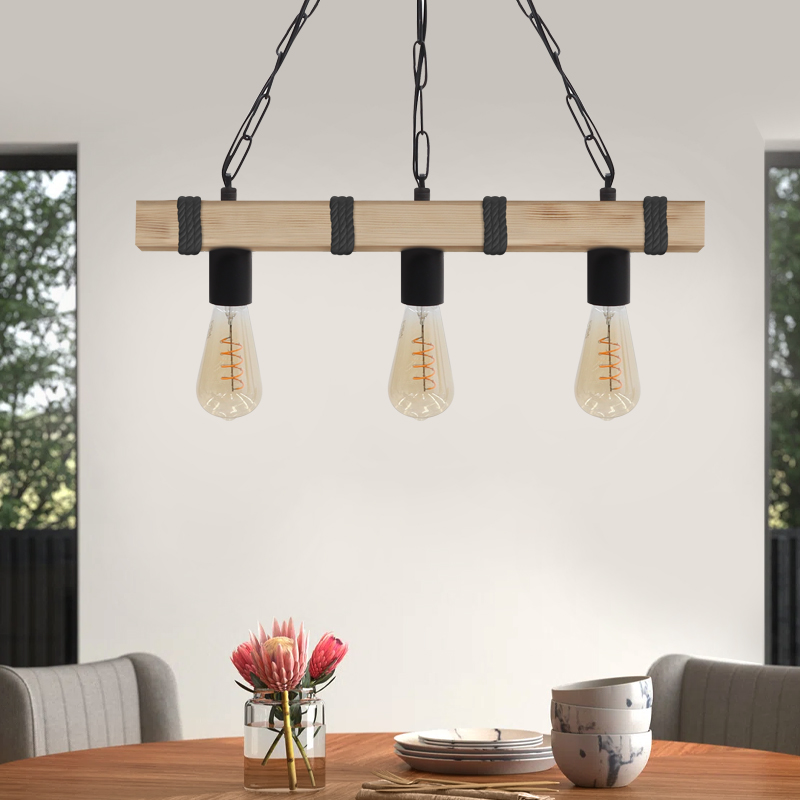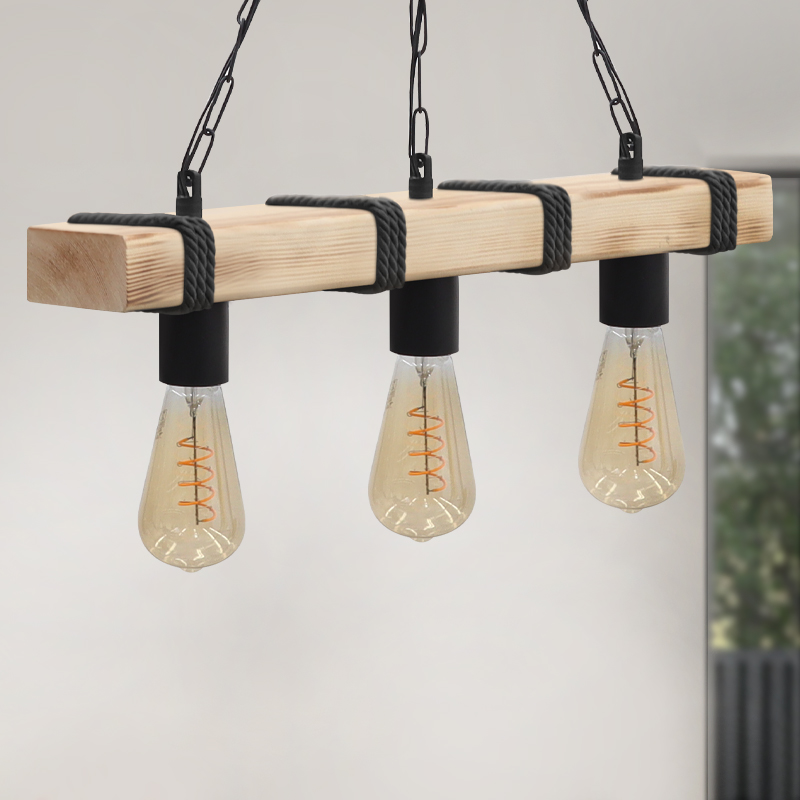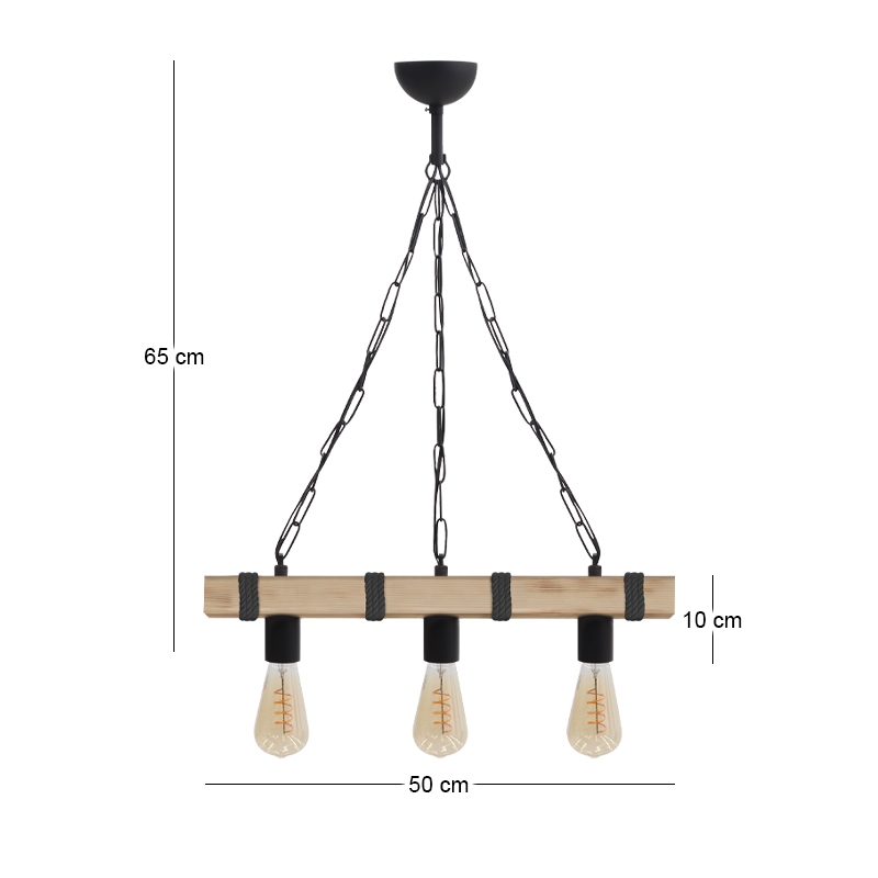 Φωτιστικό οροφής Vero Megapap E27 ξύλινο τρίφωτο χρώμα φυσικό – μαύρο 50x8x65εκ.