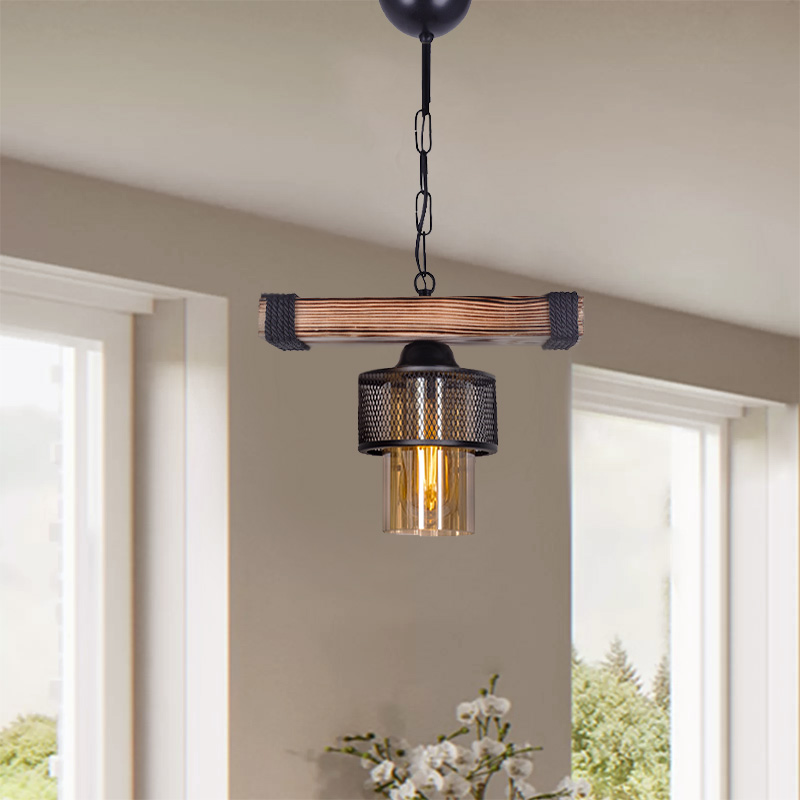 Φωτιστικό οροφής Eliana Megapap E27 ξύλινο/μεταλλικό μονόφωτο σε μαύρο/καρυδί 30x15x60εκ.