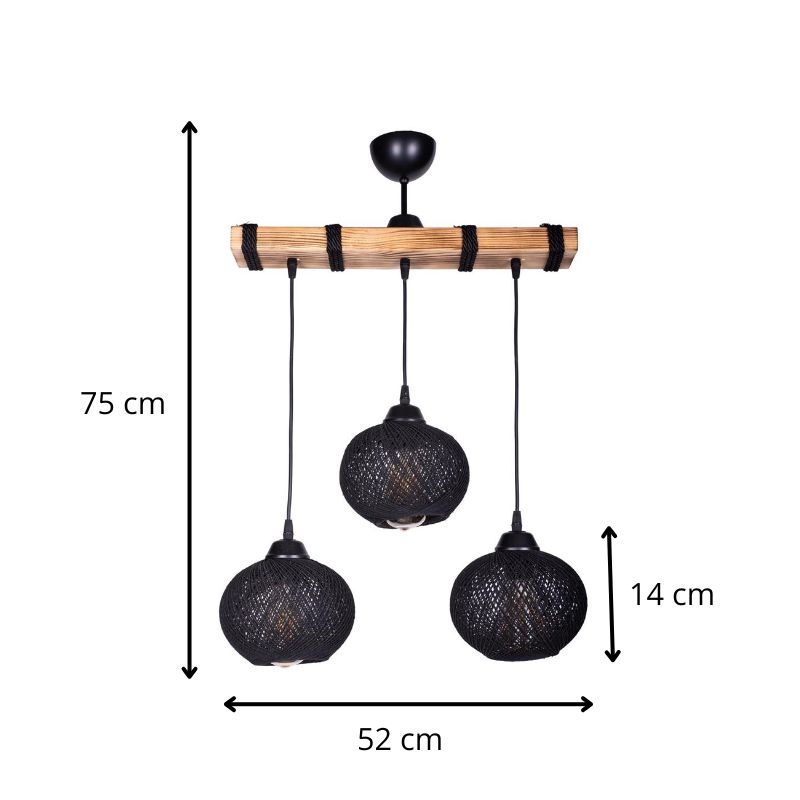 Φωτιστικό οροφής Sirmione Megapap E27 ξύλινο – σχοινί τρίφωτο χρώμα μαύρο – φυσικό 49x17x75εκ.