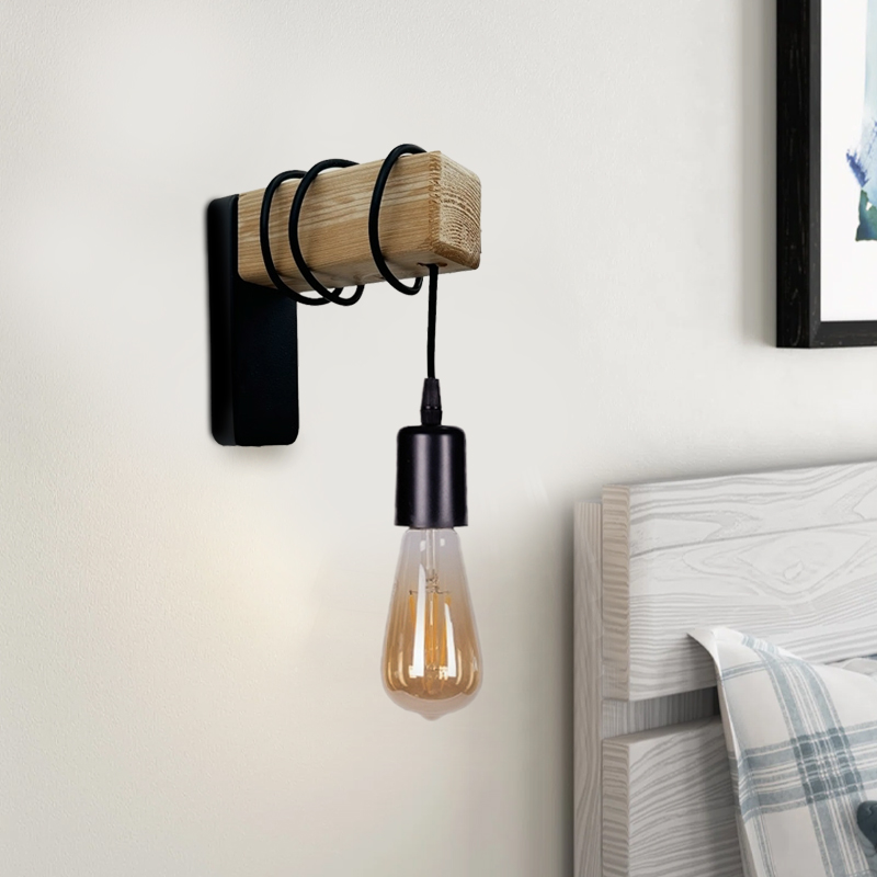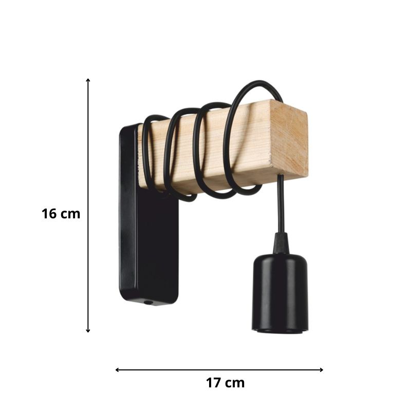 Απλίκα τοίχου Gero Megapap E27 ξύλινη χρώμα φυσικό – μαύρο 6x17x16εκ.