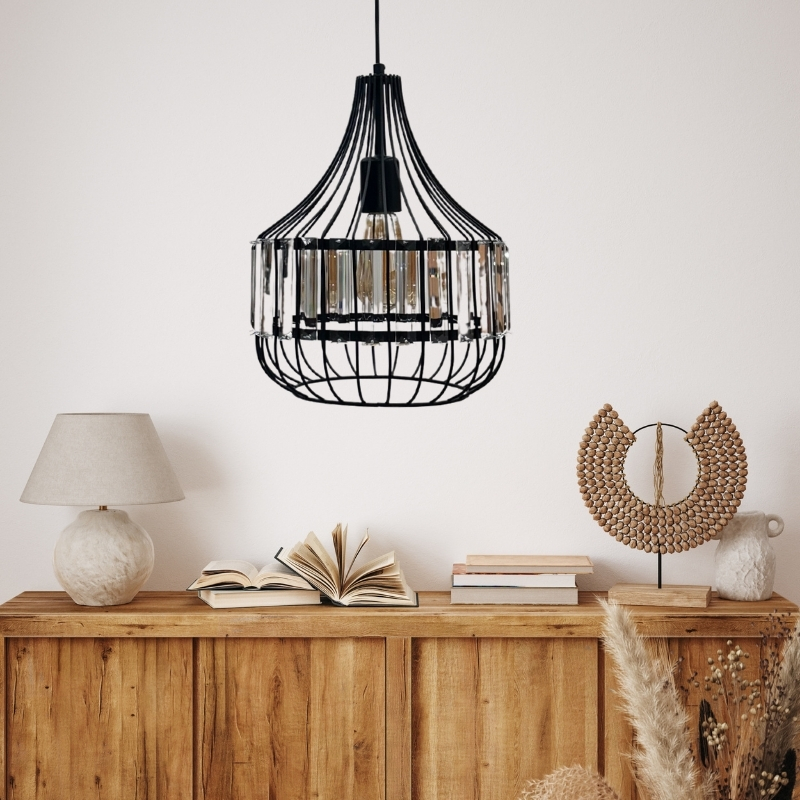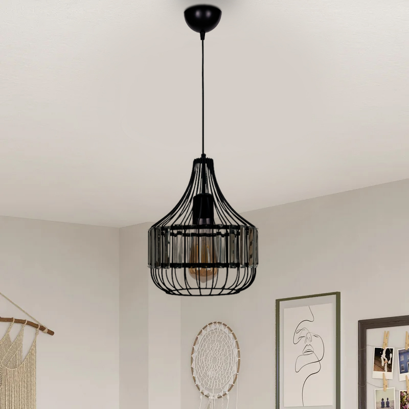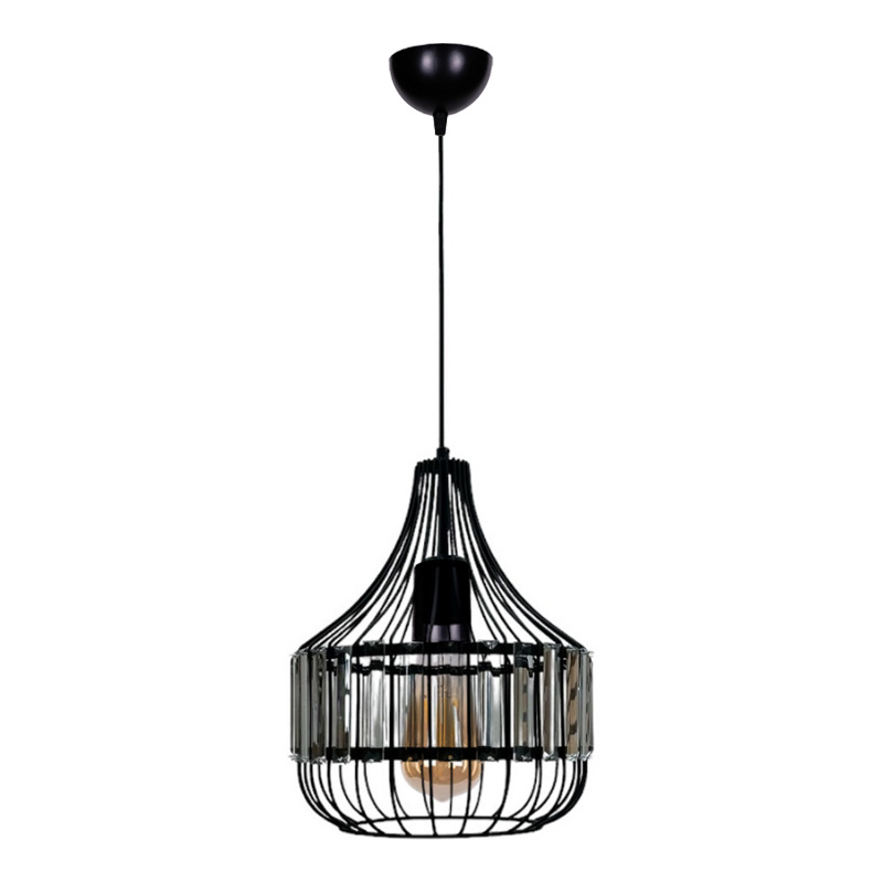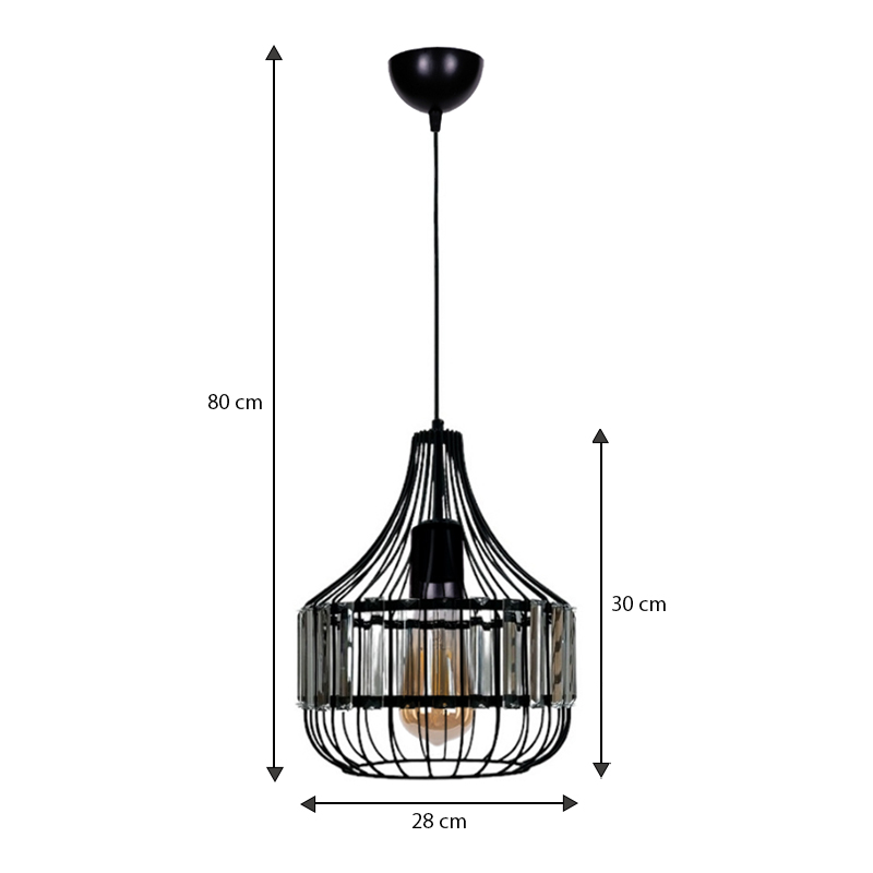 Φωτιστικό οροφής Merlin Megapap E27 μεταλλικό – γυάλινο μονόφωτο χρώμα μαύρο Ø28×80εκ.