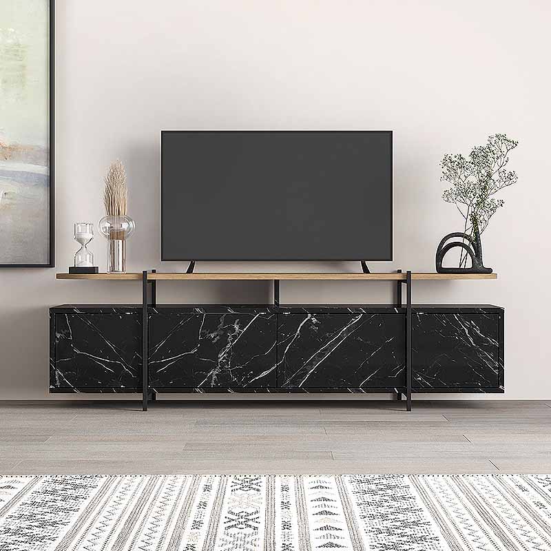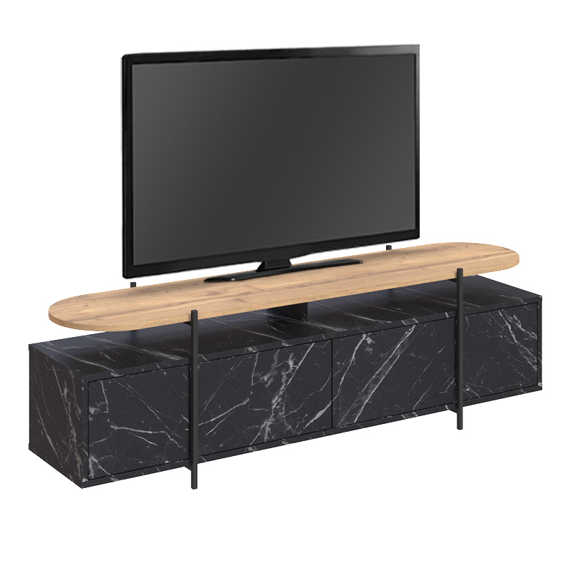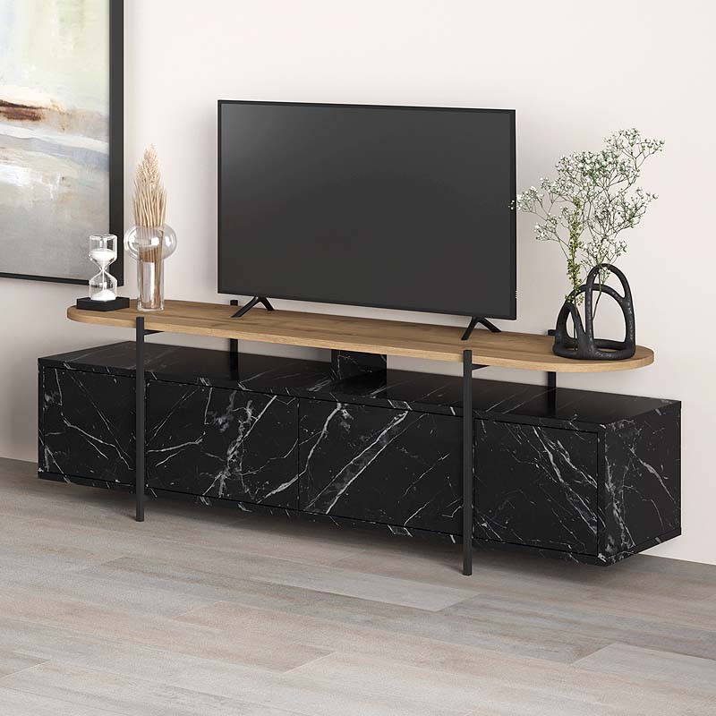 Έπιπλο τηλεόρασης Hanley Megapap χρώμα μαύρο εφέ μαρμάρου 160×35,6×48εκ.