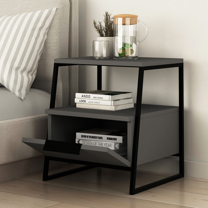 Κομοδίνο Pal Megapap χρώμα ανθρακί 45x40x50εκ.