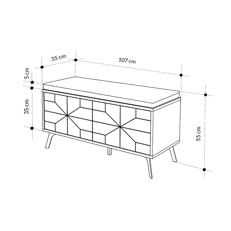 - Διαστάσεις: Μήκος 107 x Βάθος 35 x Ύψος 55 εκ.