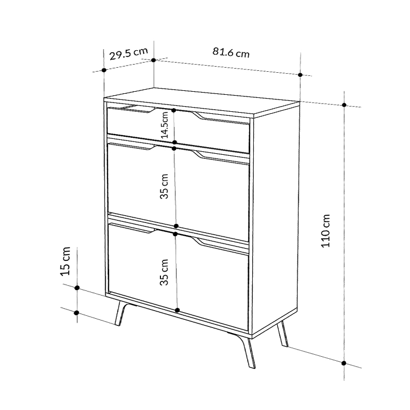 • Διαστάσεις: Μήκος 81,6 x Βάθος 29,5 x Ύψος 110 εκ.