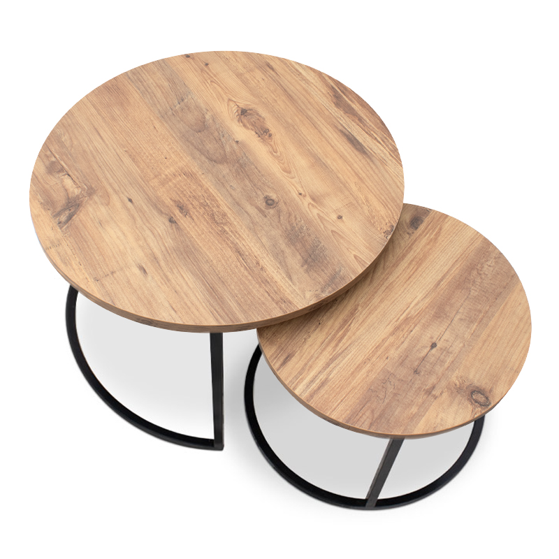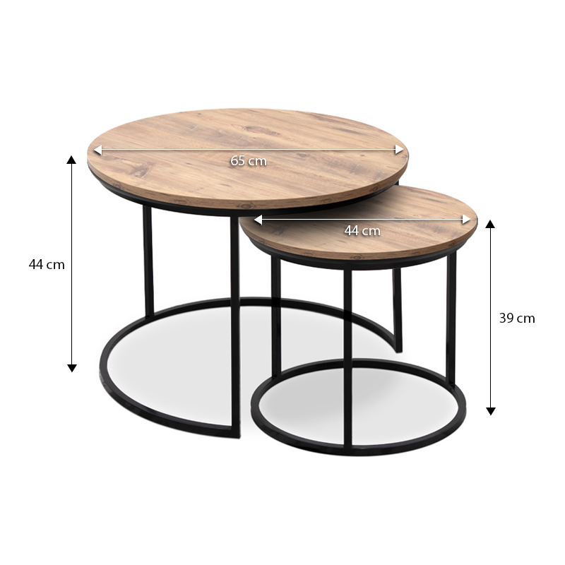 - Το σετ περιλαμβάνει δύο στρογγυλά τραπεζάκια, ένα μικρότερο κι ένα μεγαλύτερο.