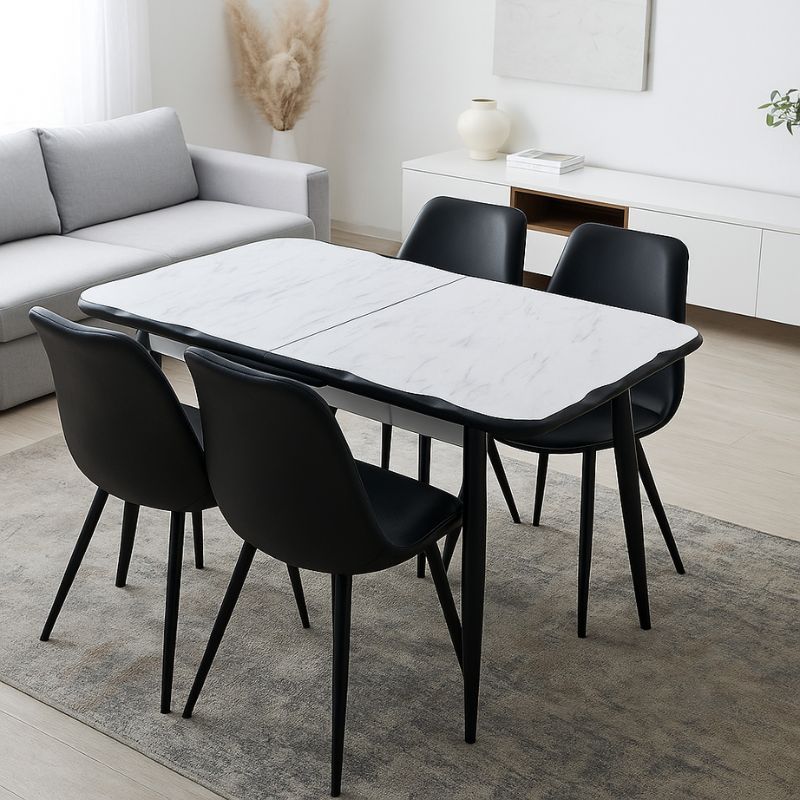 Τραπέζι Karen Megapap επεκτεινόμενο χρώμα λευκό εφέ μαρμάρου – μαύρο 130/160x80x75εκ.