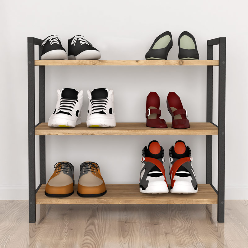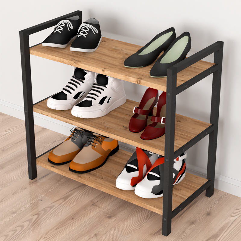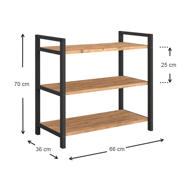Παπουτσοθήκη Navari Megapap 9 ζευγών μεταλλική – μελαμίνης χρώμα μαύρο – pine oak 66x36x70εκ.