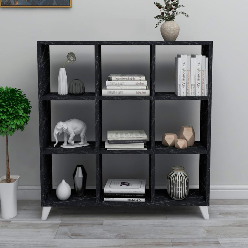 Βιβλιοθήκη μελαμίνης Saul Megapap χρώμα μαύρο εφέ μαρμάρου 88,2x20x88,2εκ.