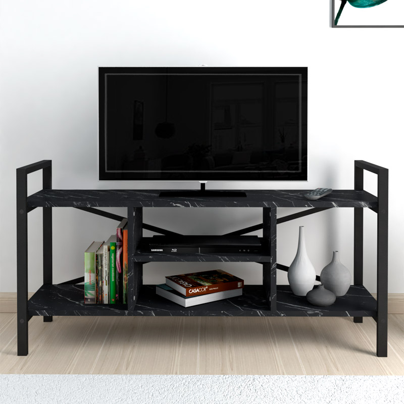 Έπιπλο τηλεόρασης Santana Megapap μεταλλικό – μελαμίνης χρώμα μαύρο εφέ μαρμάρου 120x35x61εκ.