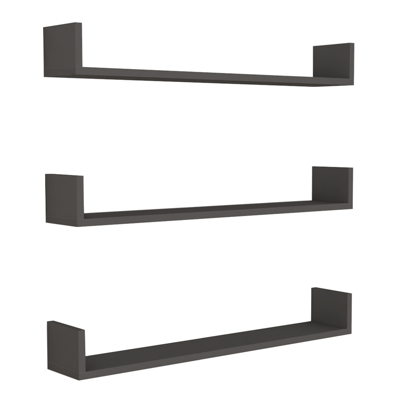 Ραφιέρα τοίχου Tyrion Megapap 3 τεμαχίων χρώμα ανθρακί 90x15x12εκ.