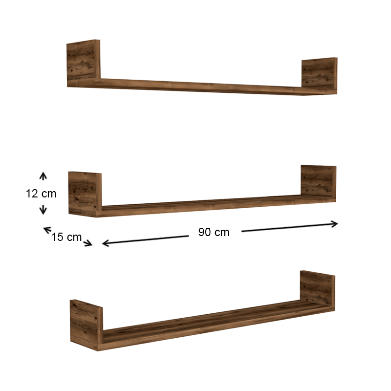 Ραφιέρα τοίχου Tyrion Megapap 3 τεμαχίων χρώμα καπνιστή καρυδιά 90x15x12εκ.