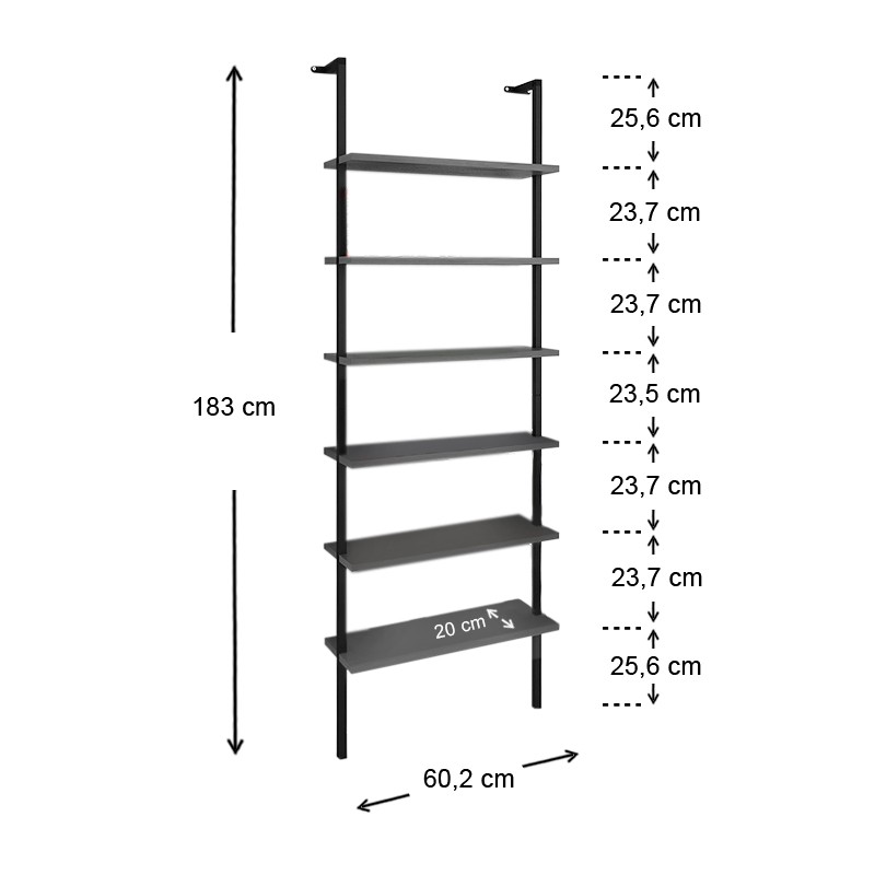 Βιβλιοθήκη τοίχου Madison Megapap μεταλλική – μελαμίνης χρώμα μαύρο – ανθρακί 60x20x183εκ.