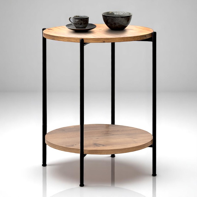 Βοηθητικό τραπεζάκι Argento Megapap μεταλλικό – μελαμίνης χρώμα pine oak 43x43x60εκ.