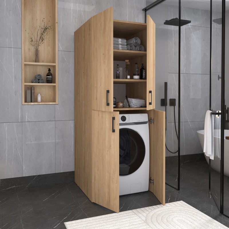 Ντουλάπα μπάνιου – Έπιπλο πλυντηρίου Millay Megapap χρώμα sapphire oak 70x70x180εκ.