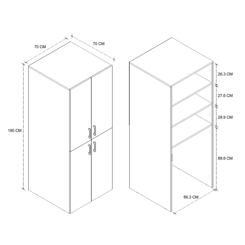 - Διαστάσεις: Μήκος 70 x Βάθος 70 x Ύψος 180 εκ.