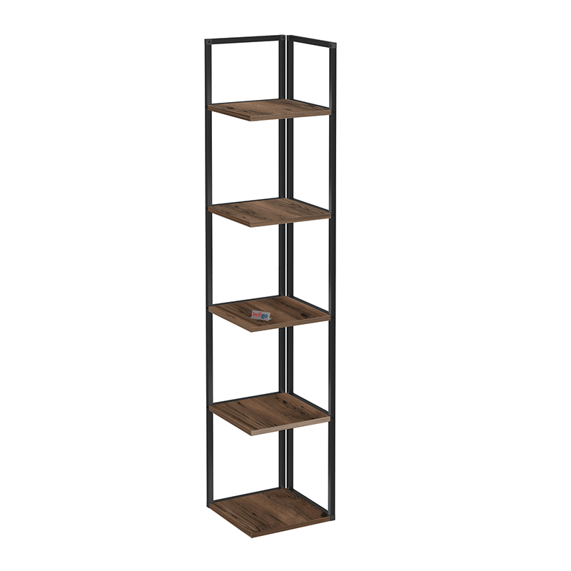 Βιβλιοθήκη γωνιακή Lidia Megapap χρώμα μαύρο – καπνιστή καρυδιά 33,5×33,5×180εκ.