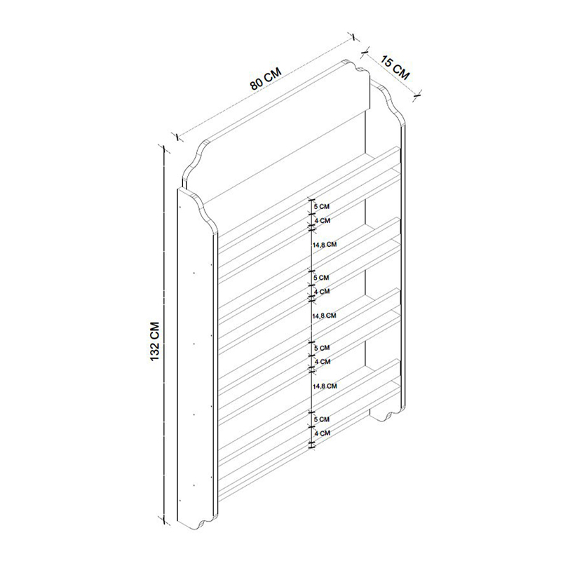 • Διαστάσεις: Μήκος 80 x Βάθος 15 x Ύψος 132 εκ.