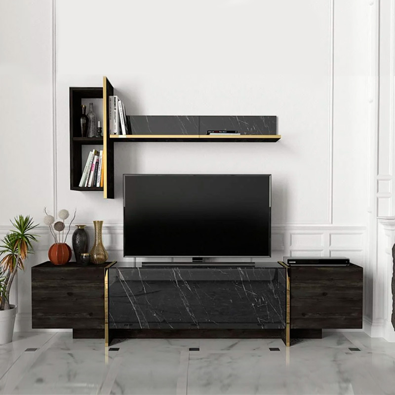Σύνθεση τηλεόρασης Veyron Megapap χρώμα μαύρο rebab – μαύρο εφέ μαρμάρου 180x33x45εκ.