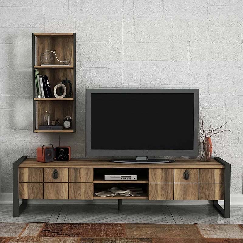 Σύνθεση τηλεόρασης Ursula Megapap χρώμα καρυδί – μαύρο 184,5x34x45εκ.
