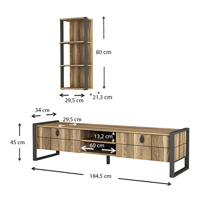 - Το έπιπλο τηλεόρασης φέρει δύο ντουλάπια και δύο ράφια.