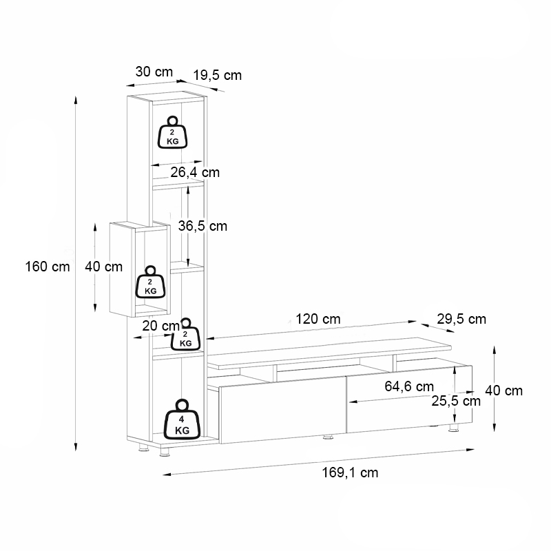 - Διαστάσεις: Μήκος 160 x Βάθος 29,5 x Ύψος 160 εκ.