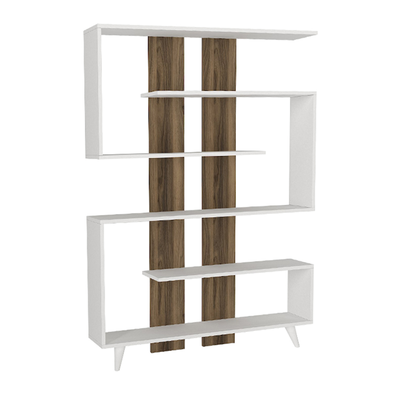 Βιβλιοθήκη μελαμίνης Rain Megapap χρώμα λευκό – καρυδί 120×19,5×162εκ.